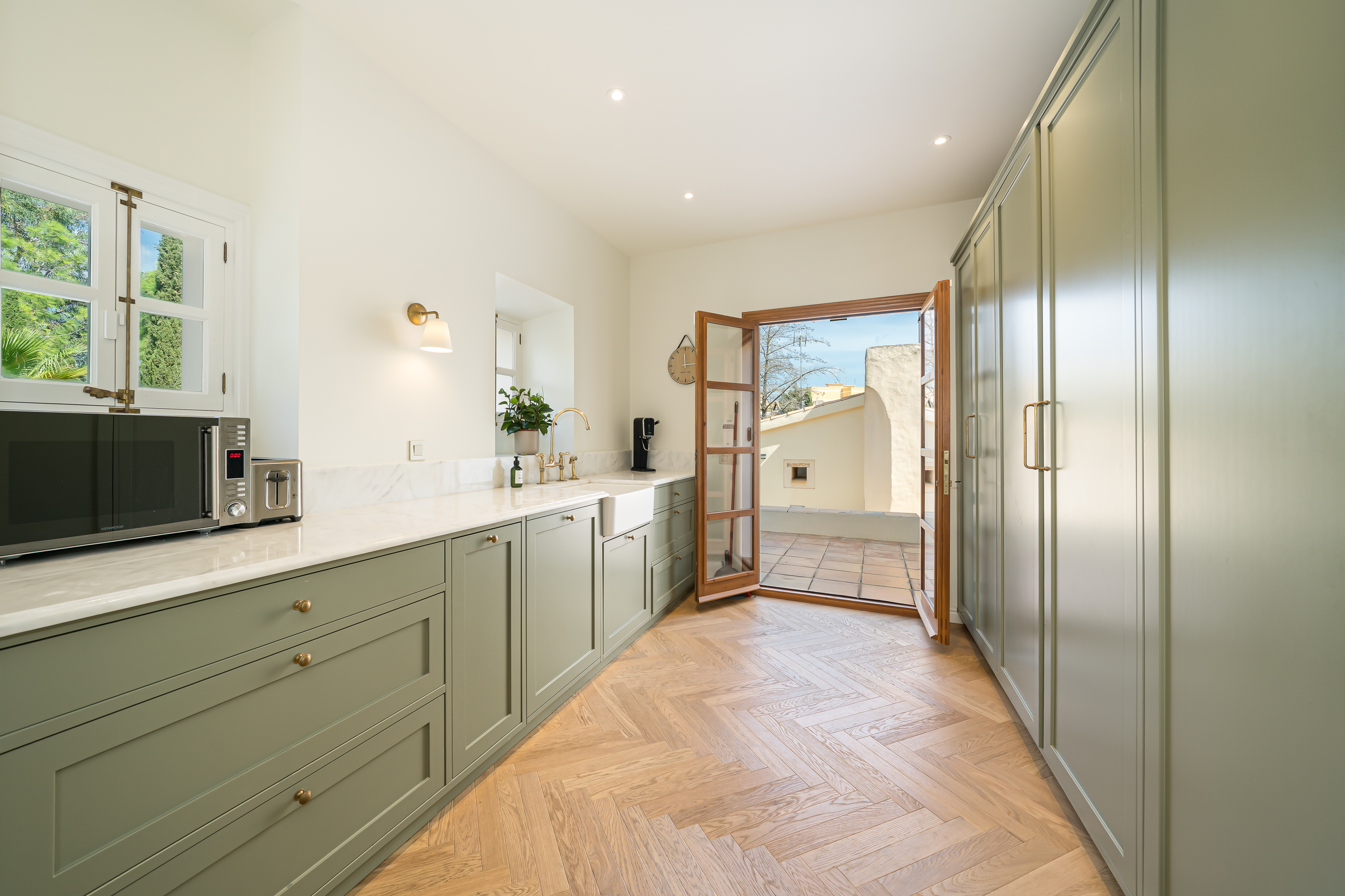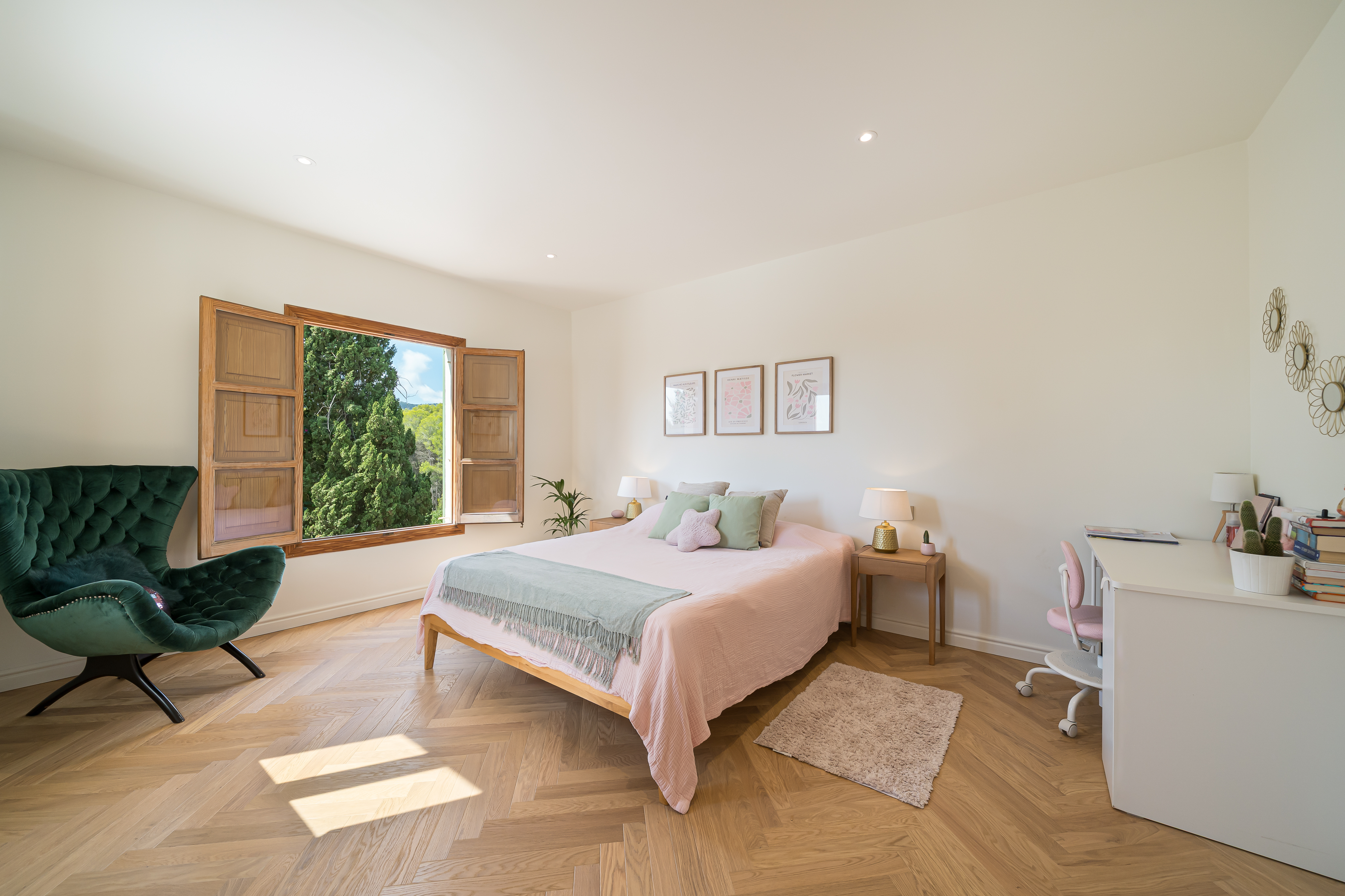 Built in 1912 and brought back to life in 2024, Casa Son Repos is one of those rare properties where age is an asset rather than an apology. The bones are original Mallorcan — stone arches, generous ceiling heights, rooms that were built for living in rather than photographing. The renovation added everything a 2024 buyer expects: Miele kitchen, underfloor heating, a Swedish-influenced interior that manages to feel warm and edited at the same time. But what makes this property genuinely interesting isn't just the house. It's what surrounds it.